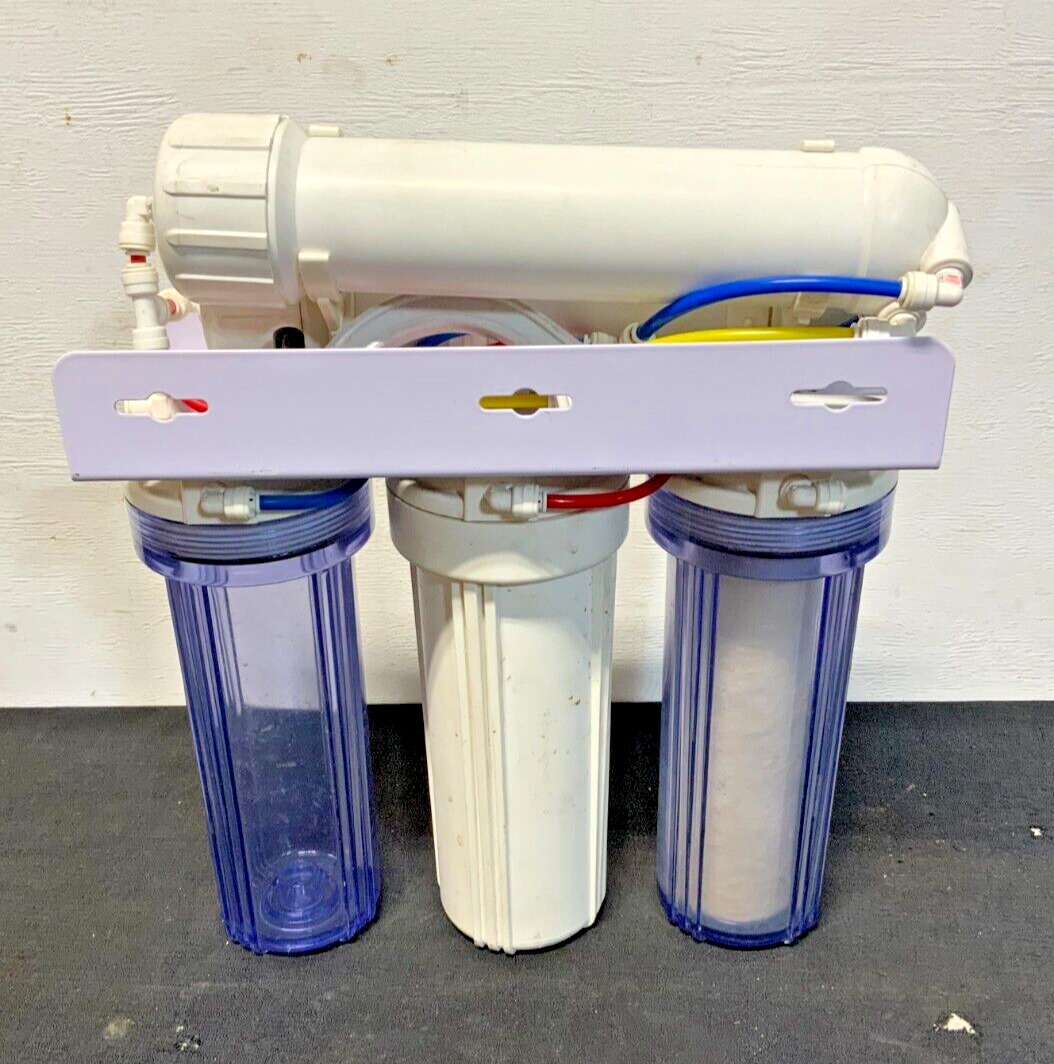 For sale by Equipment Recycle is a Abundant Flow RO-132 Reverse Osmosis RO Water Filtration System. There are no data plates or identifiers on this item so we are unsure of the model number. RO-132 is the tank model. This unit comes with tubing, the tank, a manual, and a couple other accessories. This item was removed from a local manufacturing plant. It was pulled from a working environment. There may be some scratches or other normal wear on it from use with the previous owner. Please see photographs for clarification. Here is your chance to own this for a fraction of retail. Please email us with any questions you may have, we are here to help.