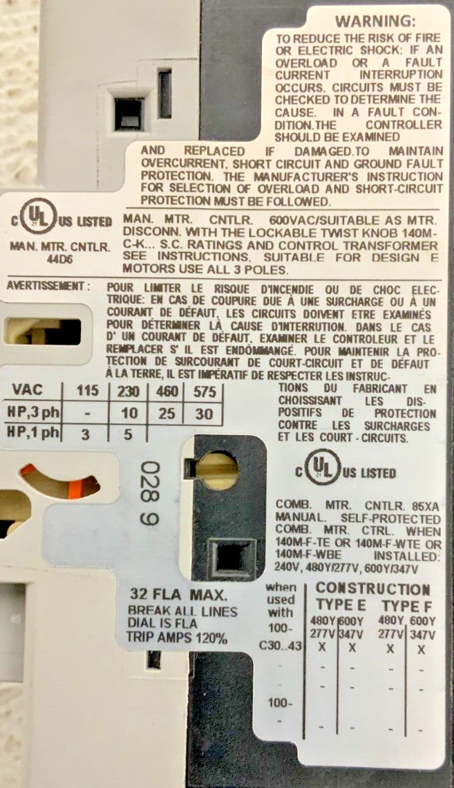 Allen-Bradley 140M-F8E-C32 Motor Protection Circuit Breaker Ser. C 242G