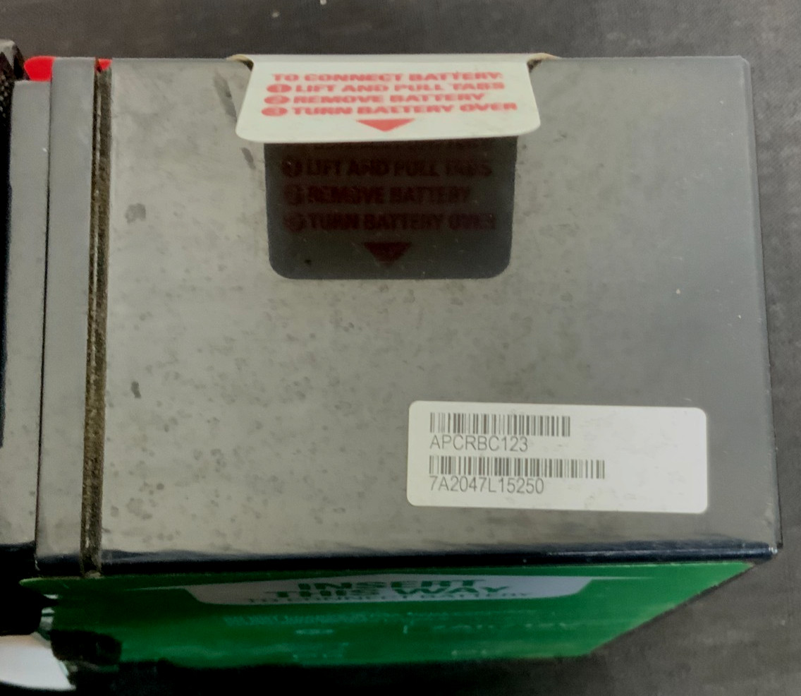 For sale by Equipment Recycle is an APC RBC APCRBC123 Replacement Battery Cartridge #123 with a voltage of 7Ah/12V. This item was removed from a local factory room. This item is almost like new, it shows some wear from storage. See pictures for clarification. It comes in the original box and packaging. Here is your chance to own this for a fraction of retail. Please email us with any questions you may have, we are here to help.