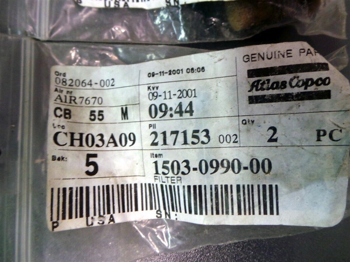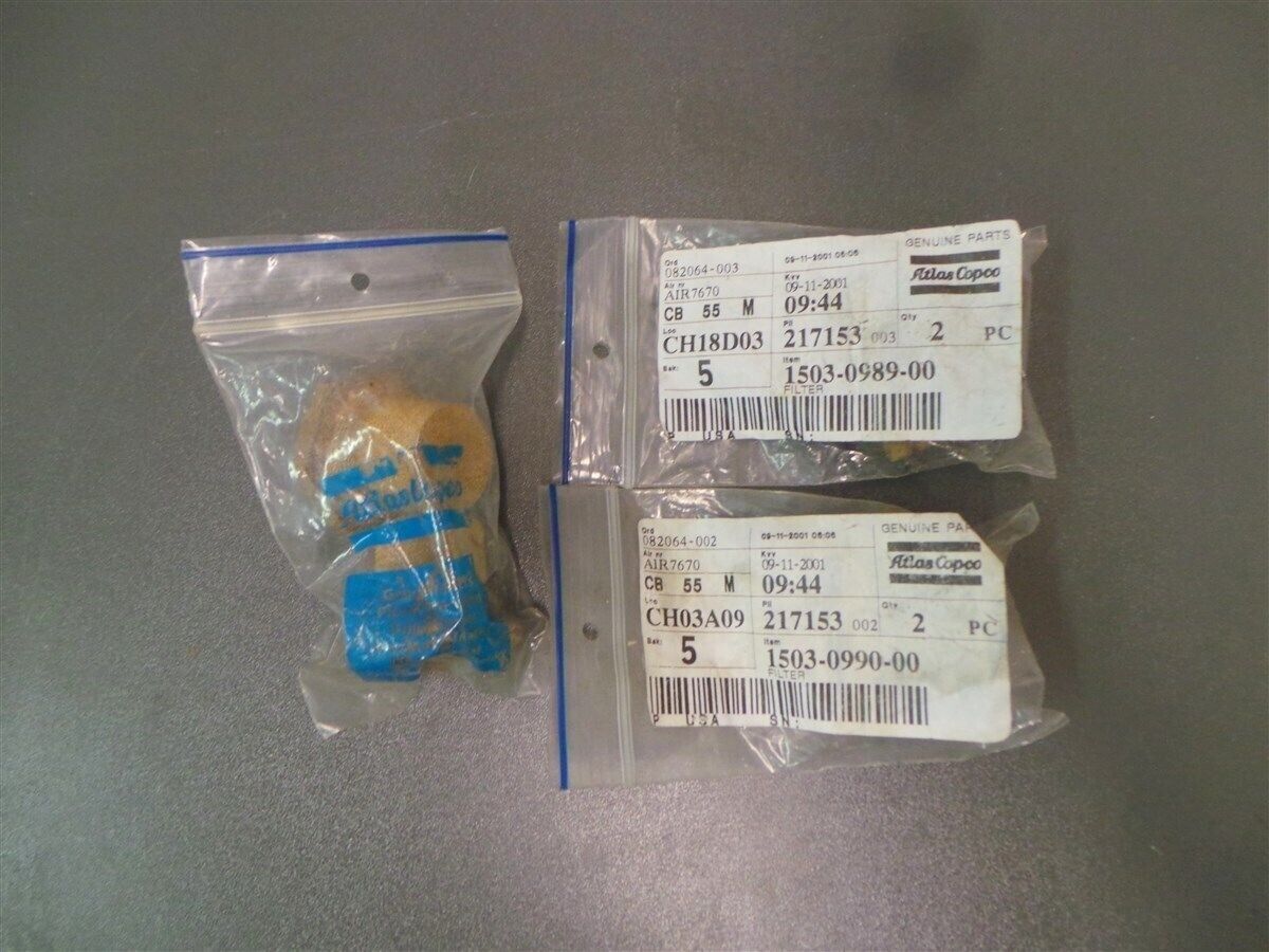 Atlas Copco Filter Parts 1503-0990-00 1503-0989-00 New Lot of 3 Sets