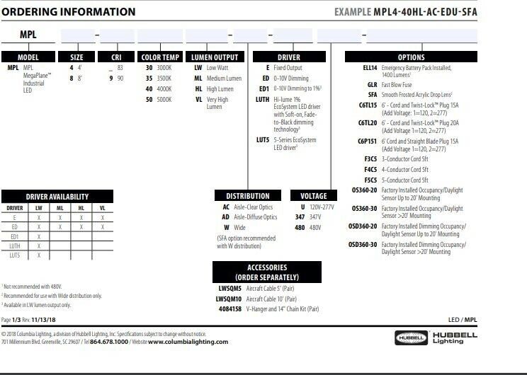 Columbia Lighting MPL MPL4-40ML-W-EDU-SFA 48″ LED MegaPlane 4000K Med Lumens New