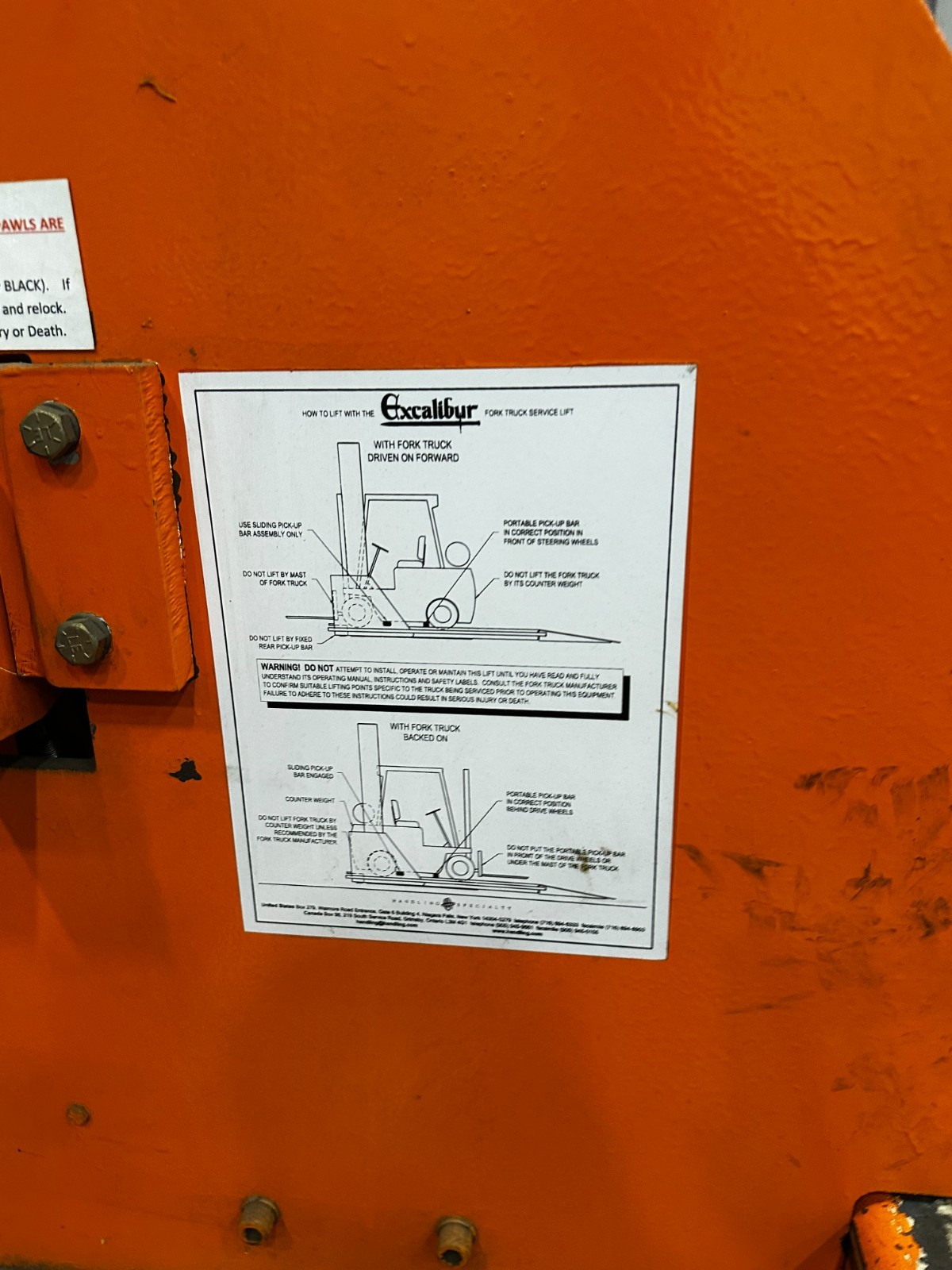 For Sale by Equipment Recycle is a Handling Specialty Excalibur CFL-200 Cantilever Style Fork Truck Service Lift. It is in good working condition. Please see video and photos for details. Here is your chance to own this for a fraction of retail! Local pick up is preferred on this item because of its size. We can also ship if details are worked out before purchase. We would recommend a dedicated truck. Please email us with any questions you may have! We are here to help!