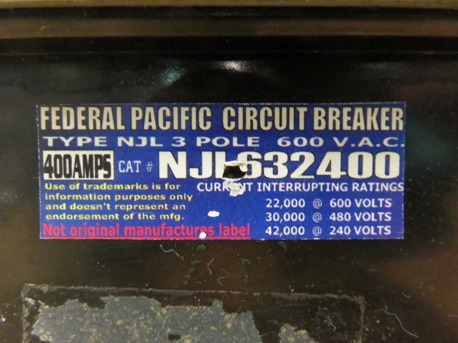 Federal Pacific Circuit Breaker Type NJL 3 Pole 400 Amp NJL632400