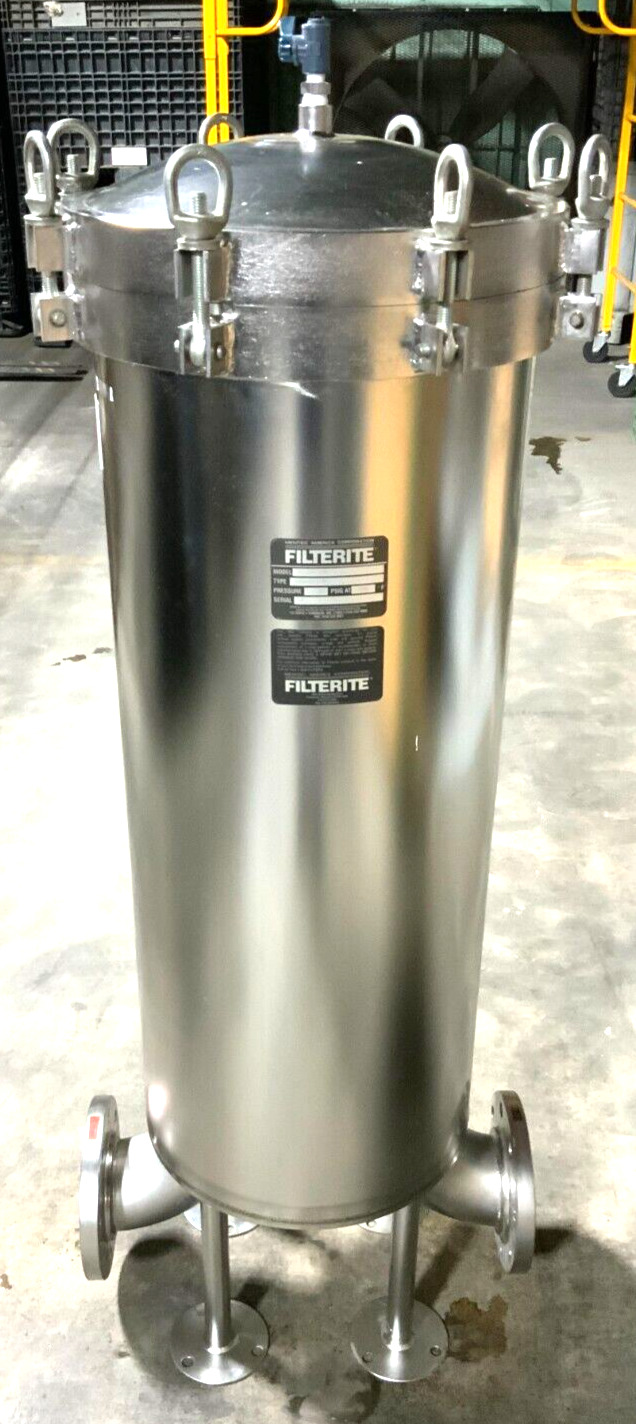 For Sale by Equipment Recycle is a Filterite Memtec 911236-000 Cartridge Filter Housing. This unit is type 63AQUA+3-4F. It is 120 PSIG @ 200F. The openings are 4-1/2″. This item was removed from a local manufacturing plant. It is in great used condition. There may be some light wear on this item from use with the previous owner. Please see photographs for clarification. Please be sure to see our other listings for many more filters and filter housings including the Filterite 911232-000 and Pall Filterite 948812-000. Here is your chance to own this for a fraction of retail! Please email us with any questions you may have! We are here to help!