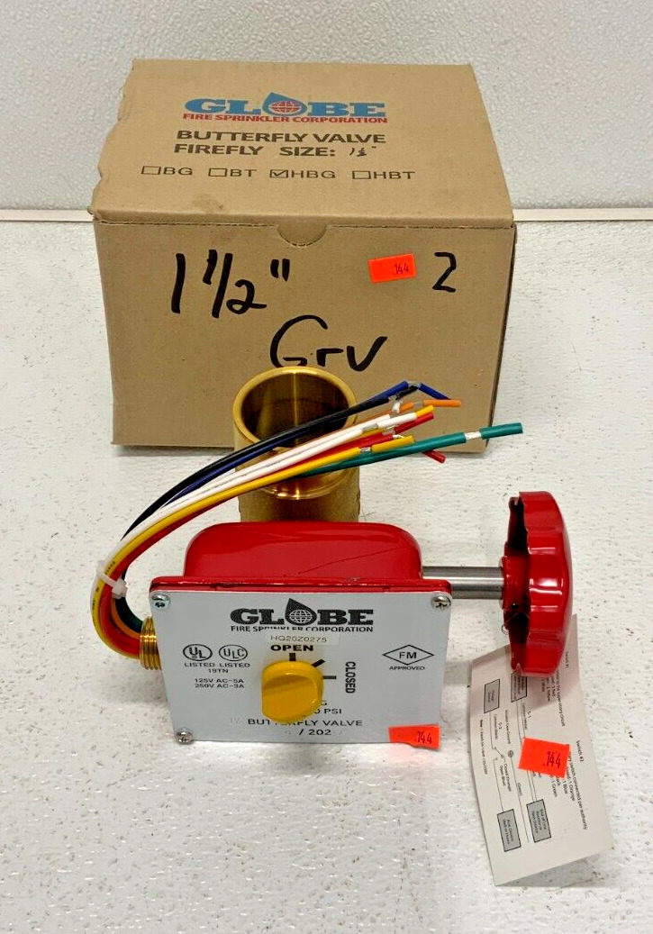 For sale by Equipment Recycle is a Globe Fire Sprinkler Co GL300G Grooved Butterfly Valve 1 1/2” HBG 300 PSI. This item was removed from a local fire supply company and is new in its original packaging. This item is in great condition. Please see photos for clarification. Here is your chance to own this for a fraction of retail. Please be sure to check out our other listings for Butterfly Valves. Please email us with any questions you may have, we are here to help.