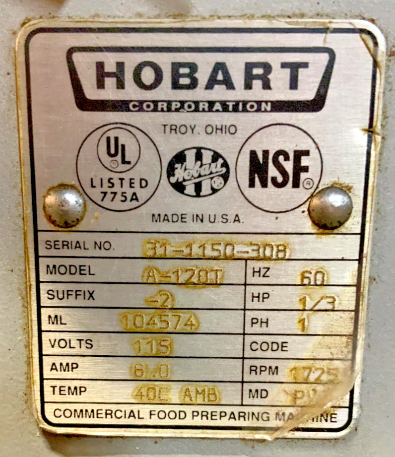 Be the first to review “Hobart A-120T Heavy Duty 12 Qt Bakery Dough Mixer w/ Stainless Bowl & Whisk” Cancel reply