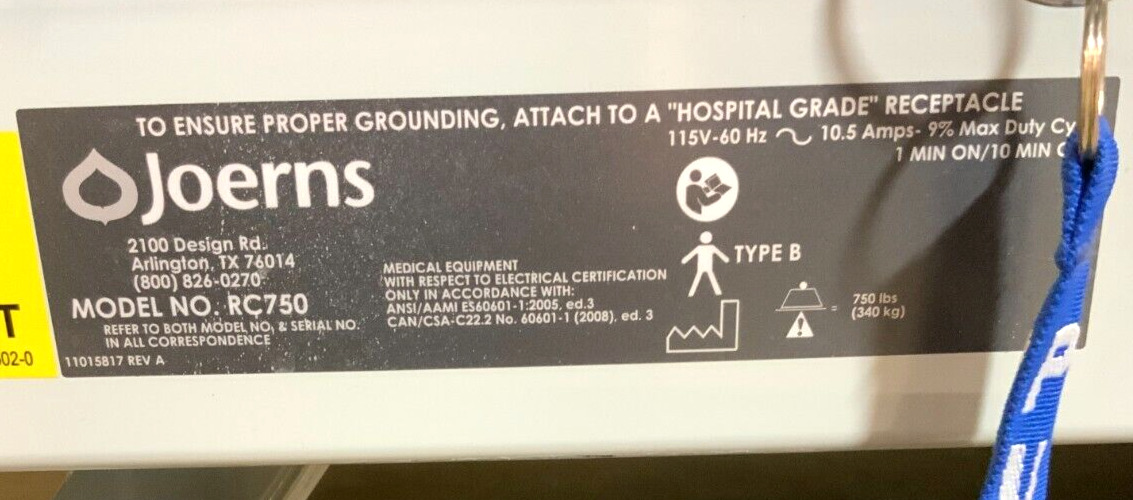 For Sale by Equipment Recycle is a Joerns RecoverCare RC 750 Electric Bariatric Homecare Hospital Bed. This bed has a 750LB max capacity. It is 115V, 60Hz, and was manufactured in 2022. This bed comes with a Joerns PrevaMatt mattress. This item was removed from a local medical facility. It powers on and is operational. All of the functions work. There may be some light wear on this bed. It is in great used condition. Please see photographs for clarification. Please be sure to see our other listings for many more hospital beds and accessories including the Joerns RCBED-PRM, ACXBED-PRM, UCXT, RC 1000, RC 850, and RC 500. Here is your chance to own this for a fraction of retail! Please email us with any questions you may have! We are here to help!