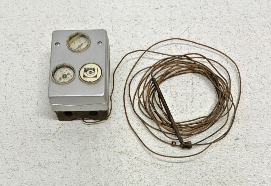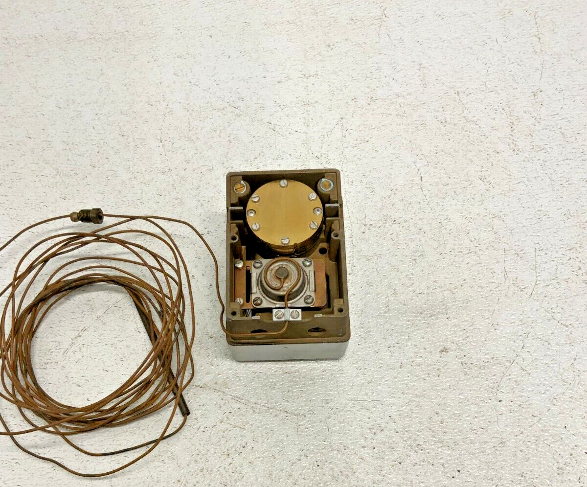 For sale by Equipment Recycle is a Johnson Controls T-8000 Proportional Action Thermostat Remote Element Control. This item is listed as 0-120F. This item was removed from a local hospital’s maintenance facility. It was pulled from a working environment. There may be some scratches or other normal wear on it from use with the previous owner. Please see photographs for clarification. Here is your chance to own this for a fraction of retail. Please email us with any questions you may have, we are here to help.