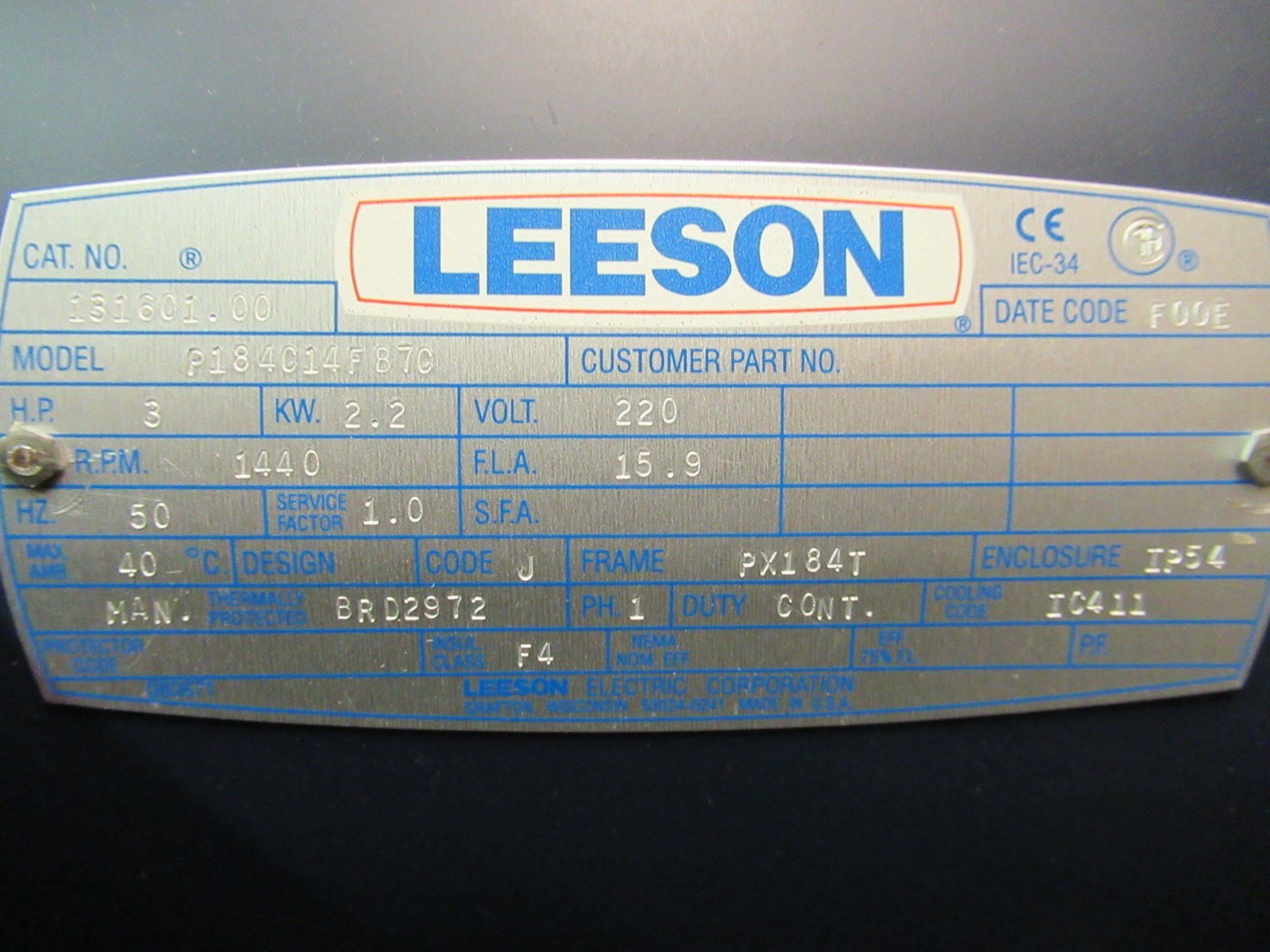 Leeson P184C14FB7C Electric Motor 220 Volt 3 HP PX184T Frame 1440 RPM New