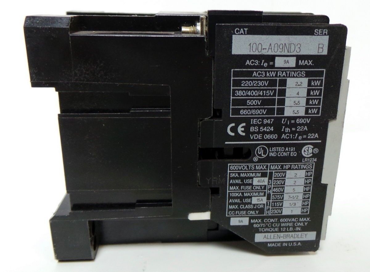 For sale by Equipment Recycle is a lot of 4 Allen Bradley 100-A09ND3 Series B. They are all used and removed from a working environment.  Here is your chance to own this for a fraction of retail. There are more details on this item below. Feel free to contact us with any questions.
