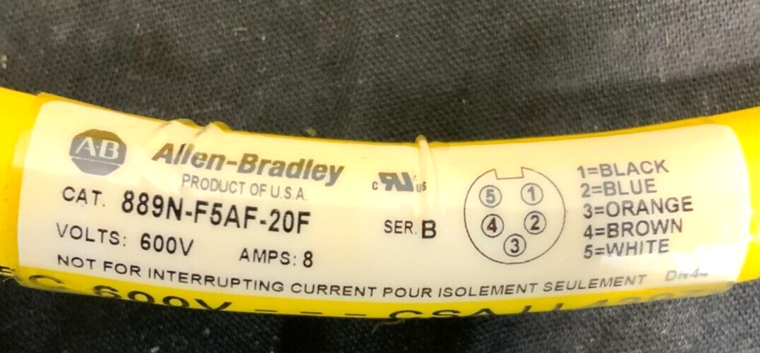 For sale by Equipment Recycle is a New Lot of 5 Allen-Bradley 889N-F5AF-20F Bulletin Straight 5 Pin Mini QD Cordset 20FT Cable. This lot was removed from a local manufacturing plant. They are new and in the original bag. Please see photographs for clarification. Here is your chance to own this for a fraction of retail. Please email us with any questions you may have, we are here to help.