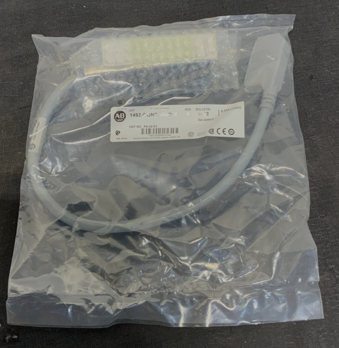 For sale by Equipment Recycle is a NEW Allen Bradley 1492 CONCAB005X PLC Conversion Cable Series A with a length of 0.5m. This item was removed from a local factory room. It is new in the original packaging. Here is your chance to own this for a fraction of retail. Please email us with any questions you may have, we are here to help.
