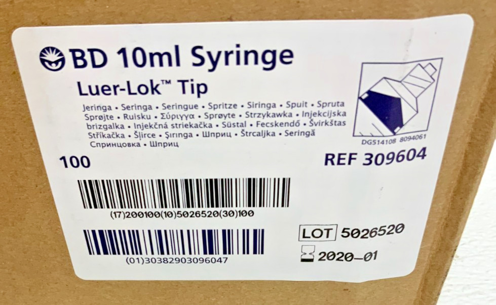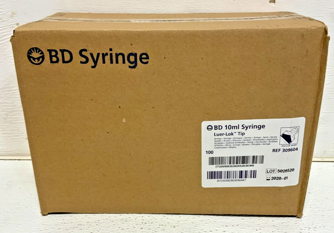 For sale by Equipment Recycle is a New Box of 100 BD 309604 Sterile Luer-Lok 10 mL Tip Syringe w/o Needle. This item was removed from a local business that closed. They are new and come in the original box and packaging. They expired in 2020. Here is your chance to own this for a fraction of retail. Please email us with any questions you may have, we are here to help.