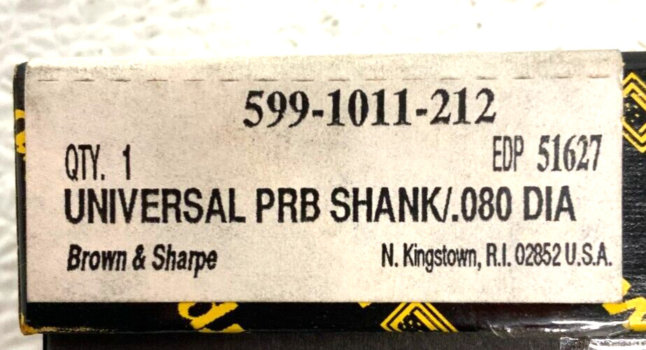 For sale by Equipment Recycle is a New Brown & Sharpe Tesa 599-1011-212 Universal PRB Shank. It is .08 Dia. This item is a holder for M1.4 and M2.5 thread probes. This item was removed from a weather instrument manufacturer. It is new and in the original box and packaging. Please be sure to see our other listings for more probes and measurement tools including the Brown & Sharpe 599-1011-211. Here is your chance to own this for a fraction of retail. Please email us with any questions you may have, we are here to help.