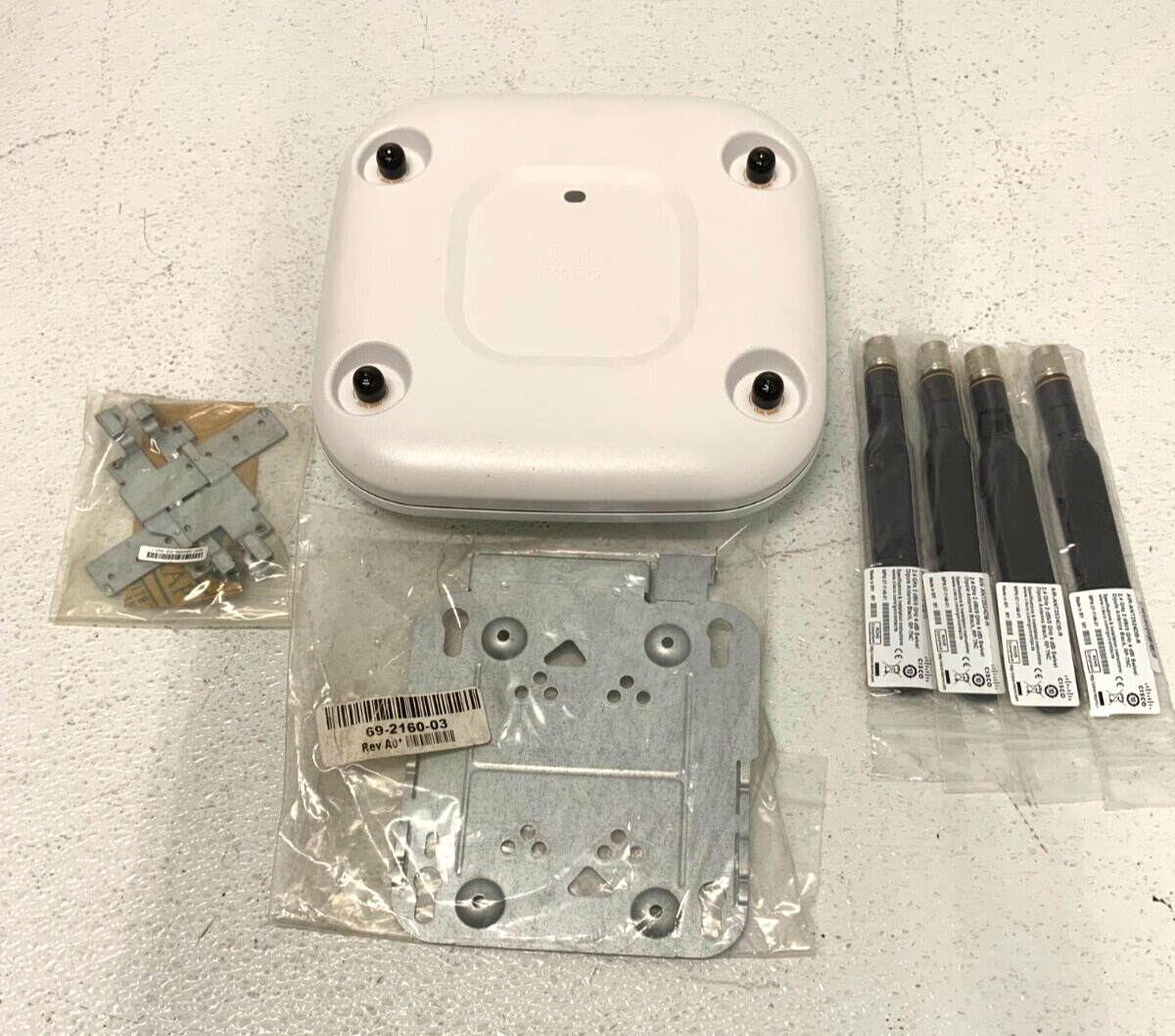 For sale by Equipment Recycle is a NEW Cisco Console AIR-CAP2702E-BK-9 Aironet 2700 Series Access Point. This items input is 28V-350MA. Included is hardware, a mounting plate and 4 antennas. This item was removed from a local manufacturing plant. This console is New open box. Here is your chance to own this for a fraction of retail. Please email us with any questions you may have, we are here to help.
