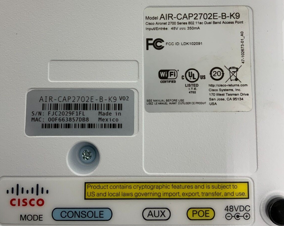 NEW Cisco Console AIR-CAP2702E-BK-9 Aironet 2700 Series Access Point 54C
