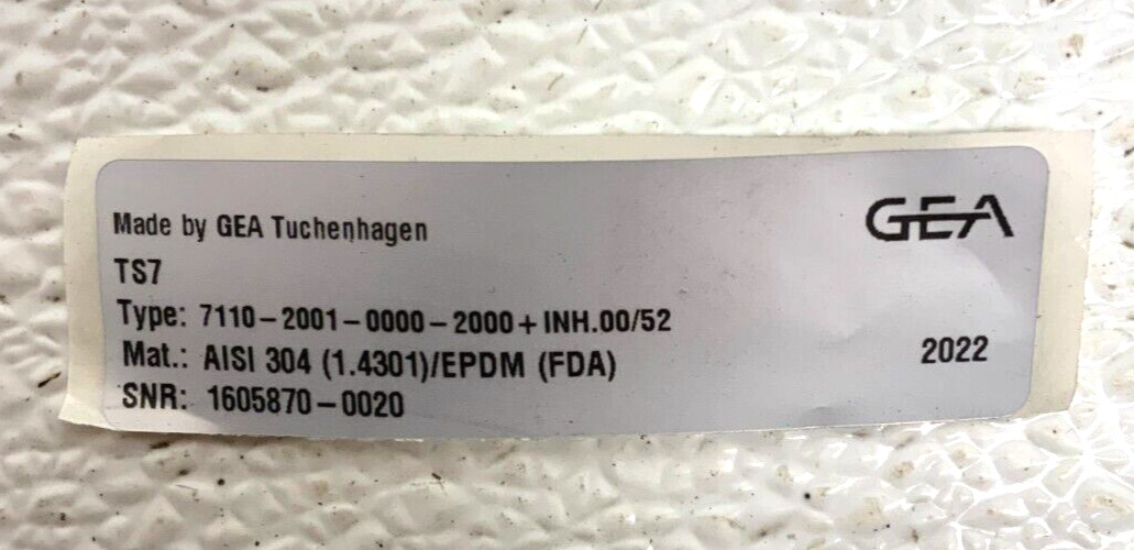 New GEA Tuchenhagen 236310010196 236310009577 2″ Hygienic Butterfly Valve. This valve is PN10 AISI 304. It is type 7110-2001-0000-2000+INH.00/52. Each side of the valve has a different model number listed on it: 236310010196 and 236310009577. This item was removed from a local manufacturing plant. Please be sure to visit our store for a wide variety of valves including the GEA Tuchenhagen 71006756, 236310010196, 236310006795, and 71007166