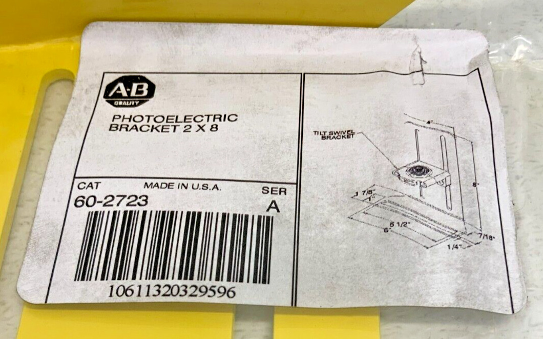 For sale by Equipment Recycle is a New Lot of 2 Allen Bradley 60-2723 2×8 Photoelectric Reflector Bracket. This bracket is a series A. This lot was removed from a local plant’s spare parts room. It is new and in the original packaging. Packaging may show some wear from storage. Please see photographs for clarification. Please be sure to visit our store for more photoelectric reflector brackets including a lot of 7 Allen Bradley brackets. Here is your chance to own this for a fraction of retail. Please email us with any questions you may have, we are here to help.