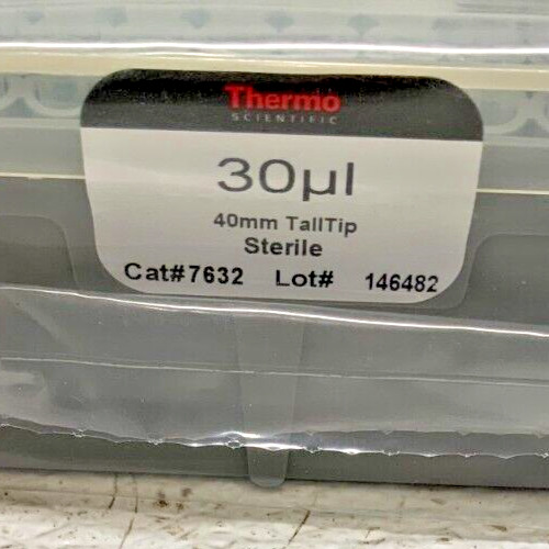 For sale by Equipment Recycle is a New Lot of 6 Racks Thermo Scientific Matrix 30 uL Tall Tip Pipette Tips. This lot is 6 racks of 96 totaling 576 tips. They are new and in the original packaging. Some are branded Thermo Scientific and some are Matrix. Please be sure to visit our store for many more pipette tips including the Rainin GPS-L10, GPS-1000, GPS-250, and Thermo Scientific 7635. Here is your chance to own this for a fraction of retail. Please email us with any questions you may have, we are here to help.