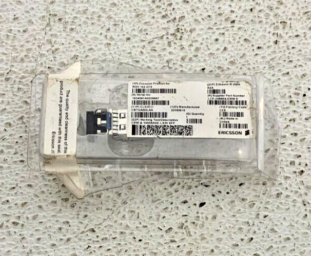 For sale by Equipment Recycle is a New Lot of 9 Ericsson RDH 102 47/3 Optical Transceiver. This unit is CPRI 1000Base – LX20 SFP. This lot was removed from a local cell tower maintenance company. They are all new and in the original case. They may have normal wear from storage. Please see photographs for clarification. Here is your chance to own this for a fraction of retail. Please email us with any questions you may have, we are here to help.