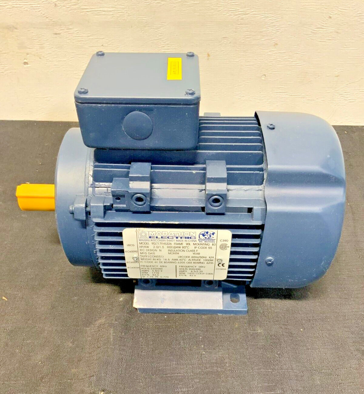 For sale by Equipment Recycle is a New Marathon Regal Rexnord 90LT17FH5326 Globetrotter Electric Motor. This motor is 2HP, 60/50Hz, 230/460//200/400V, 5.8/2.9//6.5/3.25A, 1710/1420RPM, and has a 90L frame. This item was removed from a local manufacturing plant. It is new/old stock. There are some scratches on this unit from storage and a long shelf life with the previous owner. One of the screw holes on the base mount is broken off. Please see photographs for clarification. Please be sure to visit our store for a wide variety of motors including a new Baldor CEM7014T, Baldor VM7026T, a new Reliance P14J3633M, Baldor CM7037T, and a Baldor 35V059Z542G1. Here is your chance to own this for a fraction of retail. Please email us with any questions you may have, we are here to help.