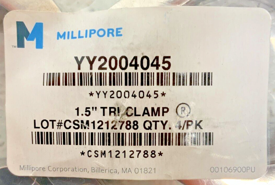 For sale by Equipment Recycle is a New Pack of 4 Millipore YY2004045 CSM1212788 1.5″ 1-1/2″ Tri-Clamp. This item was removed from a local laboratory. It is new/old stock. The bag may be ripped. They may show some wear from storage and a long shelf life with the previous owner. Please see photographs for clarification. Here is your chance to own this for a fraction of retail. Please email us with any questions you may have, we are here to help.