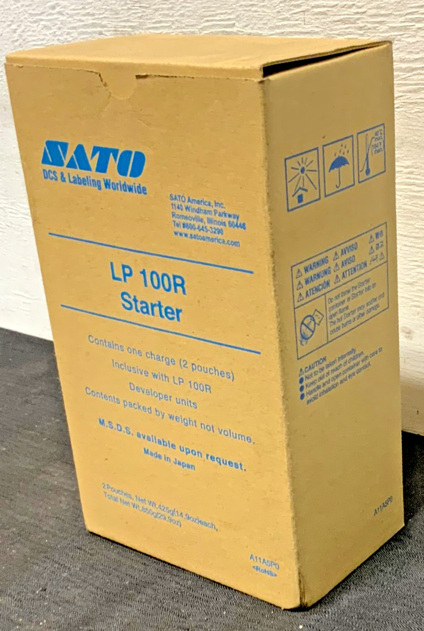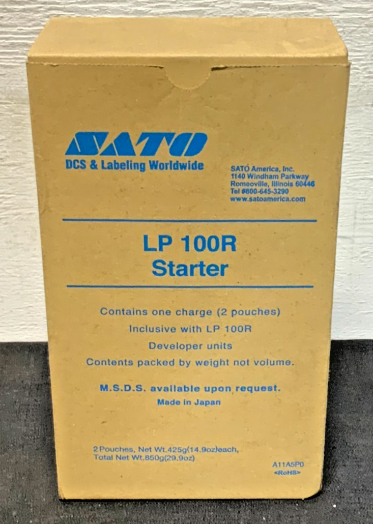 For sale by Equipment Recycle is a NEW Sato LP 100R Starter with 2 Pouches Developer Units. It is new and comes in the original box and packaging. This item was removed from a local business that closed. Here is your chance to own this for a fraction of retail. Please email us with any questions you may have, we are here to help.