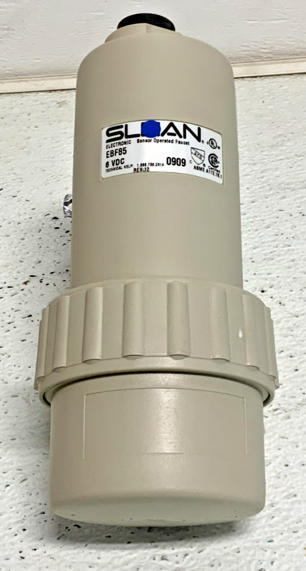 For sale by Equipment Recycle is a New Sloan Optima EBF85-4 Battery Powered Sensor Activated Lavatory Faucet. This item was removed from a local factory parts room. It is new and comes in the original packaging. Includes a manual and accessories shown in the pictures. Here is your chance to own this for a fraction of retail. Please email us with any questions you may have, we are here to help.