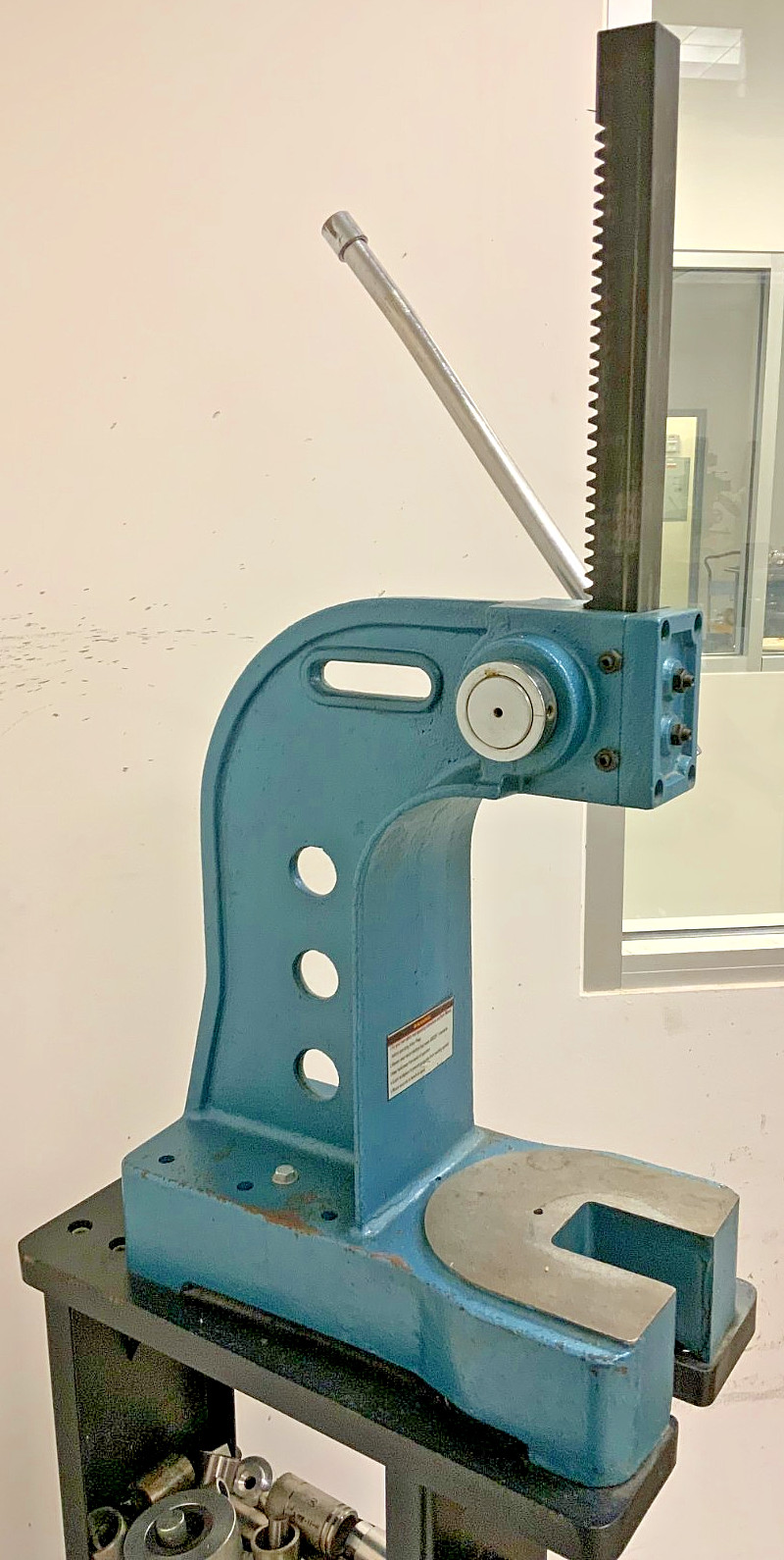 For Sale by Equipment Recycle is a Palmgren No. 3 61301 Manual Hand Press 3-Ton Arbor Press w/Stand and accessories. This item was removed from a local business that closed. It shows normal wear and tear from previous use. The handle is slightly bent. See pictures for clarification. Here is your chance to own this for a fraction of retail! Please email us with any questions you may have! We are here to help!