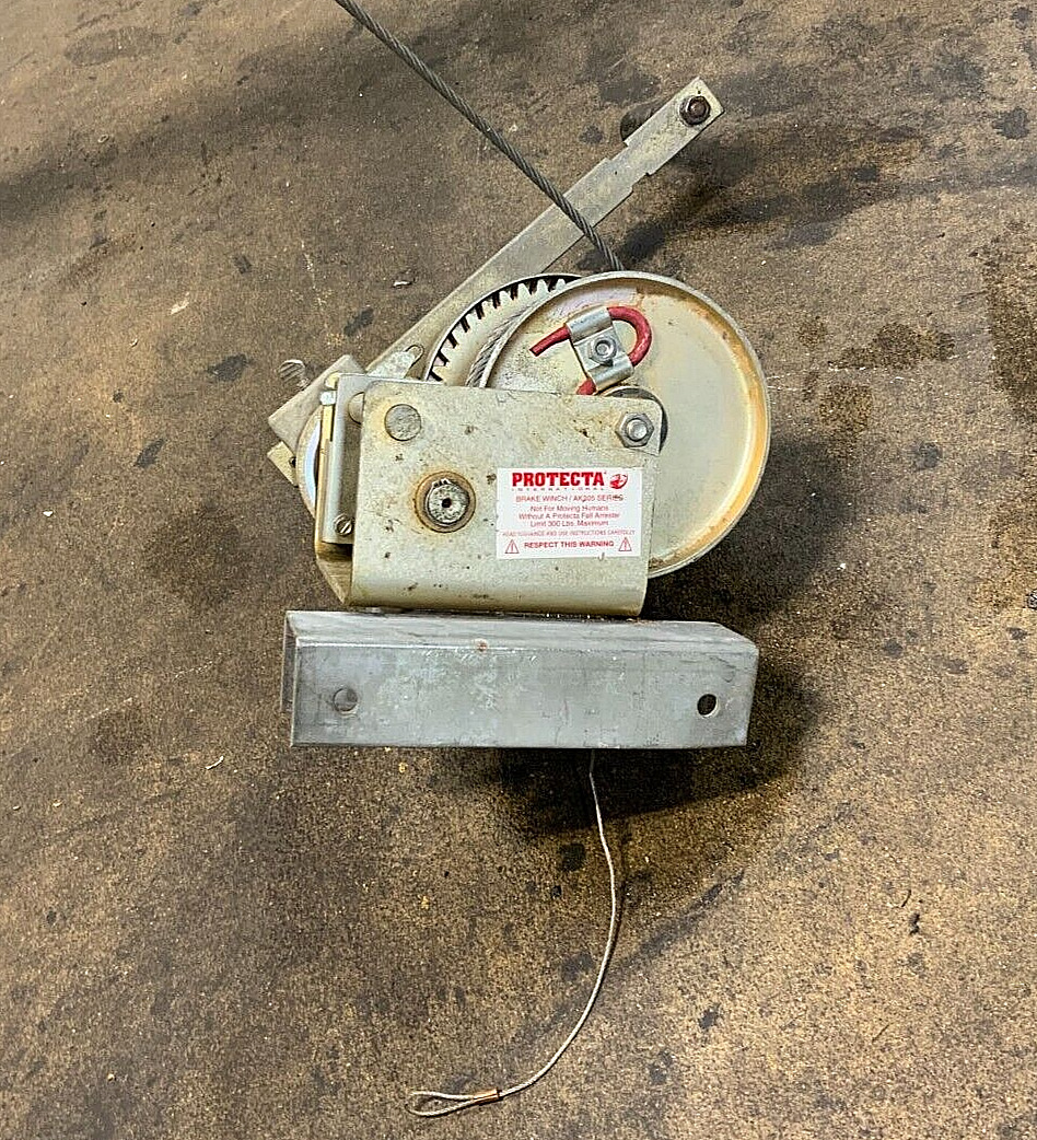 For Sale by Equipment Recycle is a Protecta AK205 Series Aluminum Tripod Confined Space System w/Winch. The winch is a brake winch. This has a 300LB Max. This item was removed from a cell tower maintenance company. There is some wear on this item. The winch has a bent bracket, so it is not attached to the tripod. This comes with the base chain. Please see photographs for clarification. Please see our other listings for much more cell tower maintenance related products including the DBI Sala 8000000 Salalift II. Here is your chance to own this for a fraction of retail! Please email us with any questions you may have! We are here to help!
