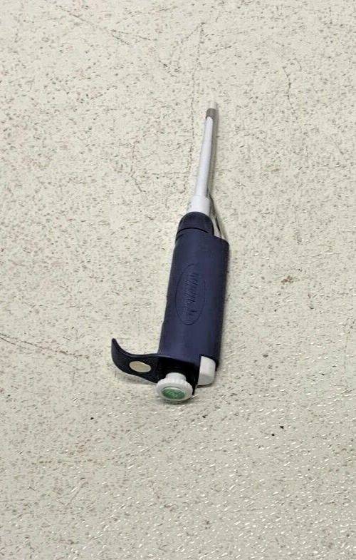 For sale by Equipment Recycle is a Rainin L100 Pipet-Lite Single Channel Pipettor. This can go up to 100uL. This item was removed from a local laboratory. It was pulled from a working environment. It may have normal wear from the previous owner. It also has some tape and adhesive residue on it. Please see photos for clarification. Here is your chance to own this for a fraction of retail. Please email us with any questions you may have, we are here to help.