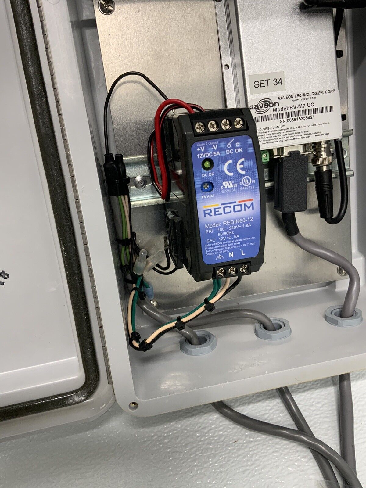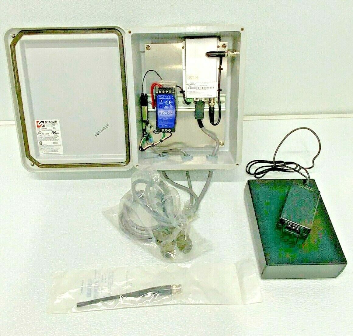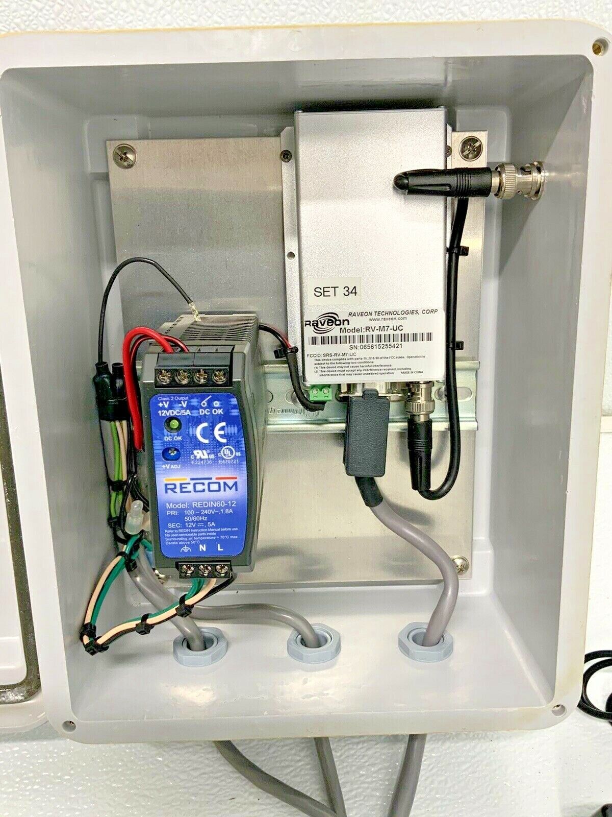 For Sale by Equipment Recycle is a Raveon RV-M7-UC Synced Radio Wireless Modem & Power/Breaker Box Bundle. This item includes a Stahlin J1008HWA Outer Breaker Box, Recom REDIN60-12 Power Supply, & 2 Raveon RV-M7-UC Radio Synced High Speed narrow band data modems, one is in the breaker box and the other is in the black wireless modem box. This item is used in good condition. We are unable to test the item’s functions but the item was pulled from a working environment. . The item also includes antenna. PLUG IN POWER CORD NOT INCLUDED. Please visit our store for other Raveon data radio bundles. Here is your chance to own this for a fraction of retail! Please let us know if you have any questions! We are here to help!