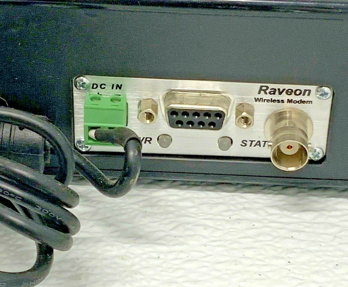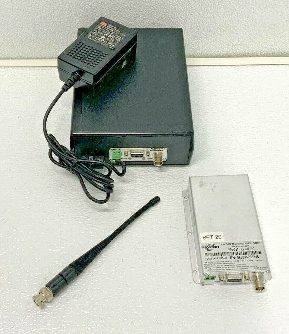 For Sale by Equipment Recycle is a Raveon RV-M7-UC Synced Radio Wireless Modem Set & Antenna. This item includes 2 Raveon RV-M7-UC Radio Synced High Speed narrow band data modems, one is inside the black wireless modem box. This item is used in good condition, We are unable to test the item’s functions but the item was pulled from a working environment. The item also includes connection accessories, antenna and power cord. Please visit our store for other Raveon data radio bundles. Here is your chance to own this for a fraction of retail! Please let us know if you have any questions! We are here to help!