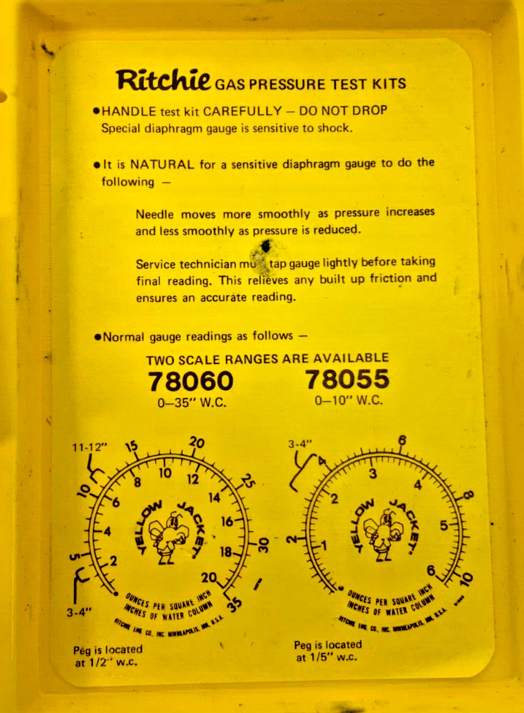 Ritchie 686800- 78060 Yellow Jacket Gas Pressure Gauge Test Kit 0-35" W.C. 36B