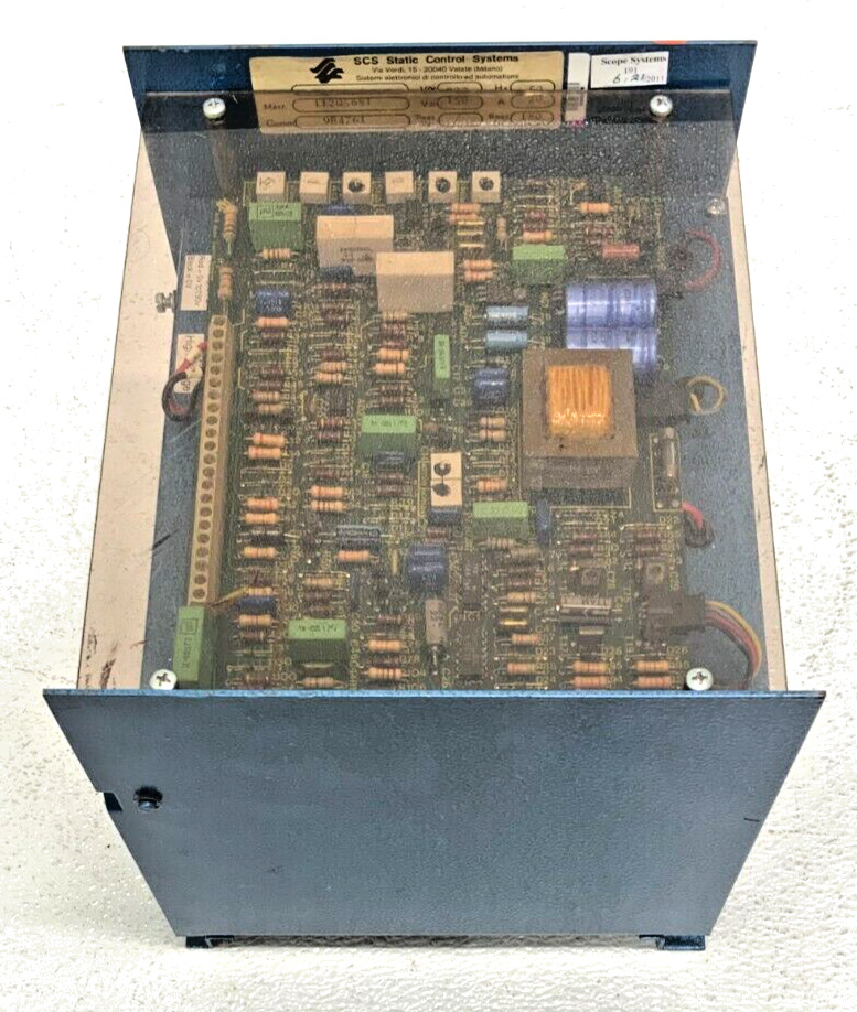 For sale by Equipment Recycle is an SCS CM220 25TR Controller Converter. On the identification plate on the item has listed Matr. 11205681, Comm. 9B4761, V~220, V=150, Hz 50, A 20, and Reaz. DT 180. This item was removed from a local electrical company. It was in use prior to removal. There may be some accumulated dust in some spots. The item also may have some wear from use with the previous owner. Please see photographs for clarification. Here is your chance to own this for a fraction of retail. Please email us with any questions you may have, we are here to help.