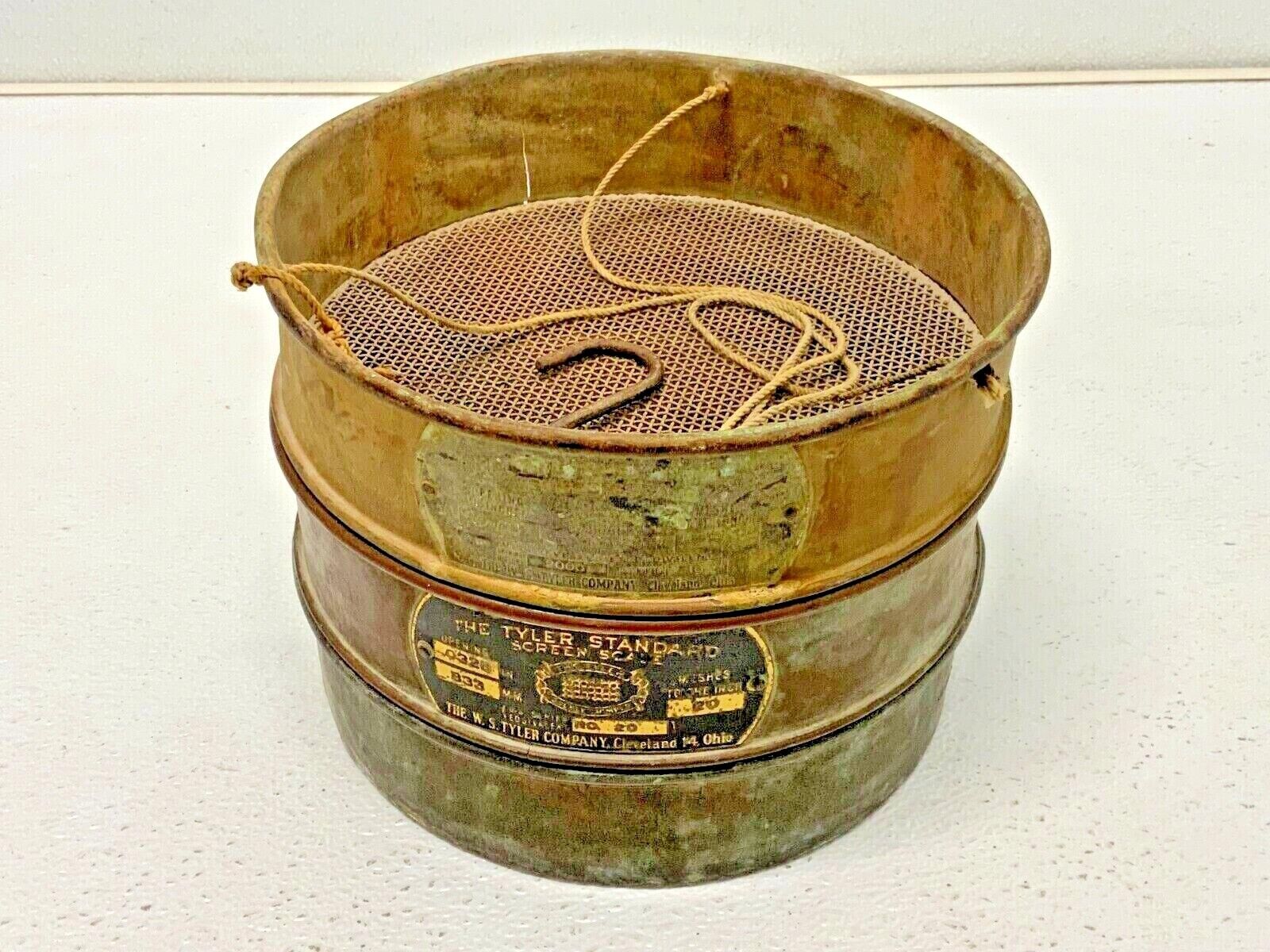 Home Other Set of 2 Tyler Standard Screen Scale Brass Sieves 8″ Dia 9, 20, Pan Lot #13
