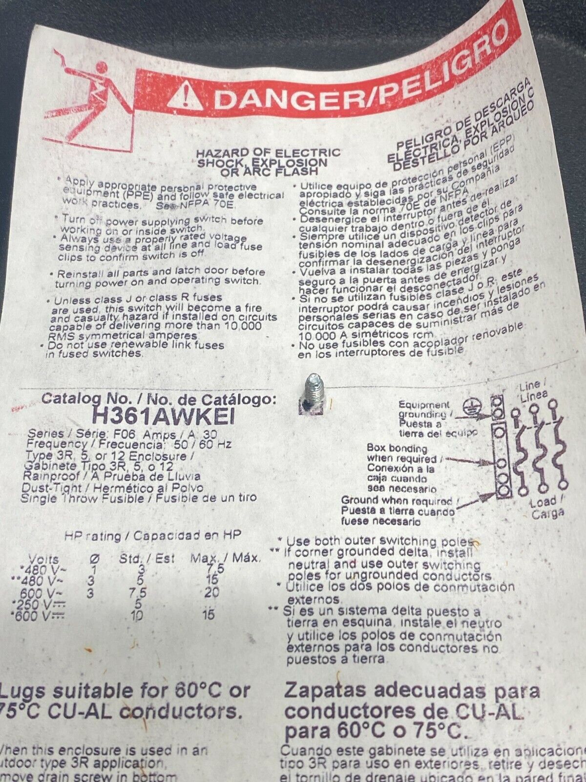 Be the first to review “Square D H361AWKEI Heavy Duty Safety Switch 480/600V Black w/ Fuses A2B” Cancel reply
