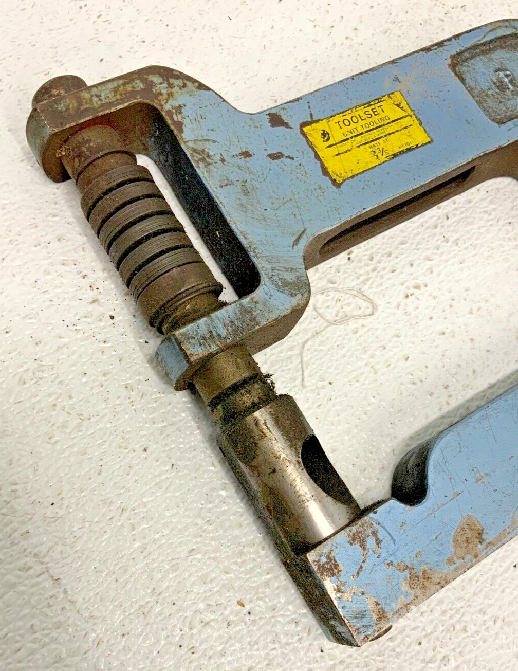 For sale by Equipment Recycle is a Tool Set Unit Tooling 120H-06-6 C Frame Punch Sheet Metal Hole Press Brake Tool. This item was removed from a weather instrument manufacturer and is in good used condition. It does have some dust built up from the previous owner but it appears to work. Please see photos for clarification. Here is your chance to own this for a fraction of retail. Please email us with any questions you may have, we are here to help.