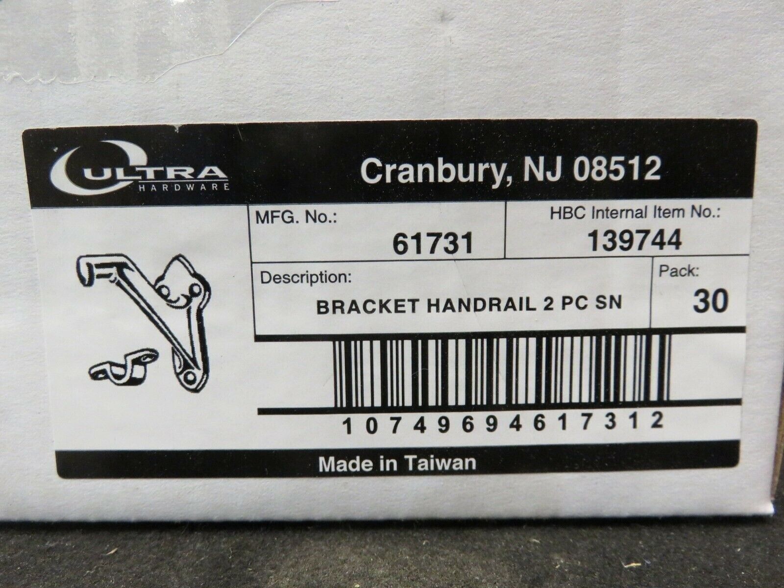 Home Industrial/MRO Ultra Hardware Handrail Bracket 61731 2 Piece Nickel Stainless New Lot of 30.