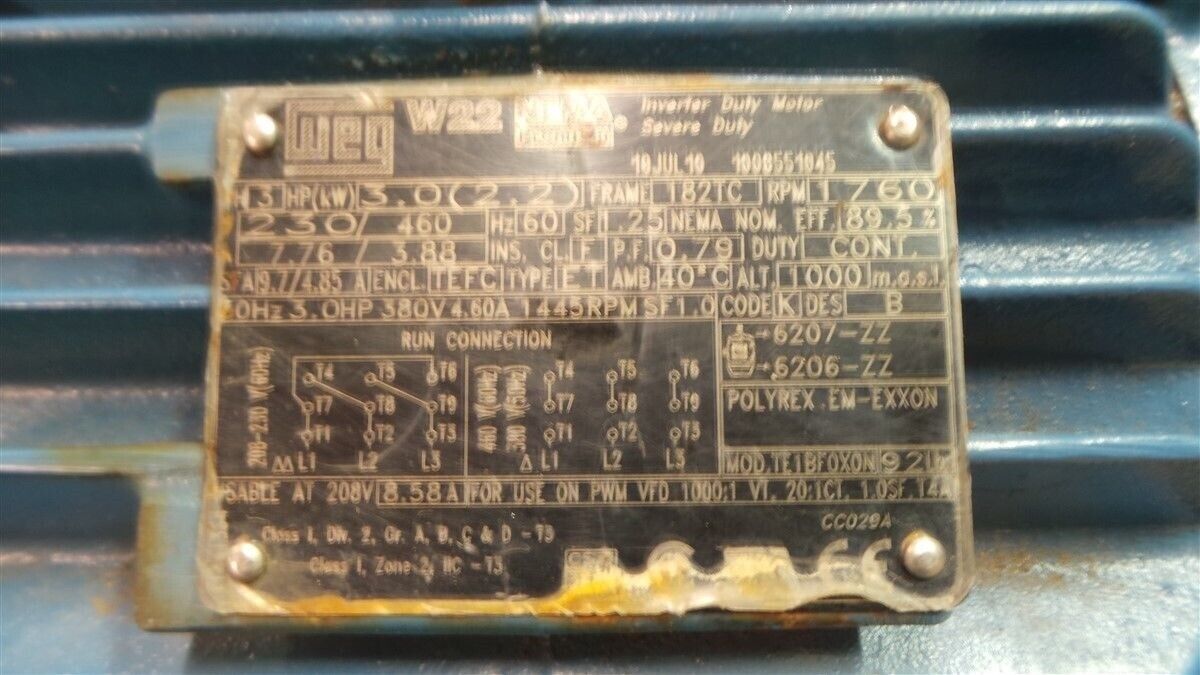 Home Other Weg Electric Motors TE1BFOXON Inverter Severe Duty Motor Phase 3 3HP